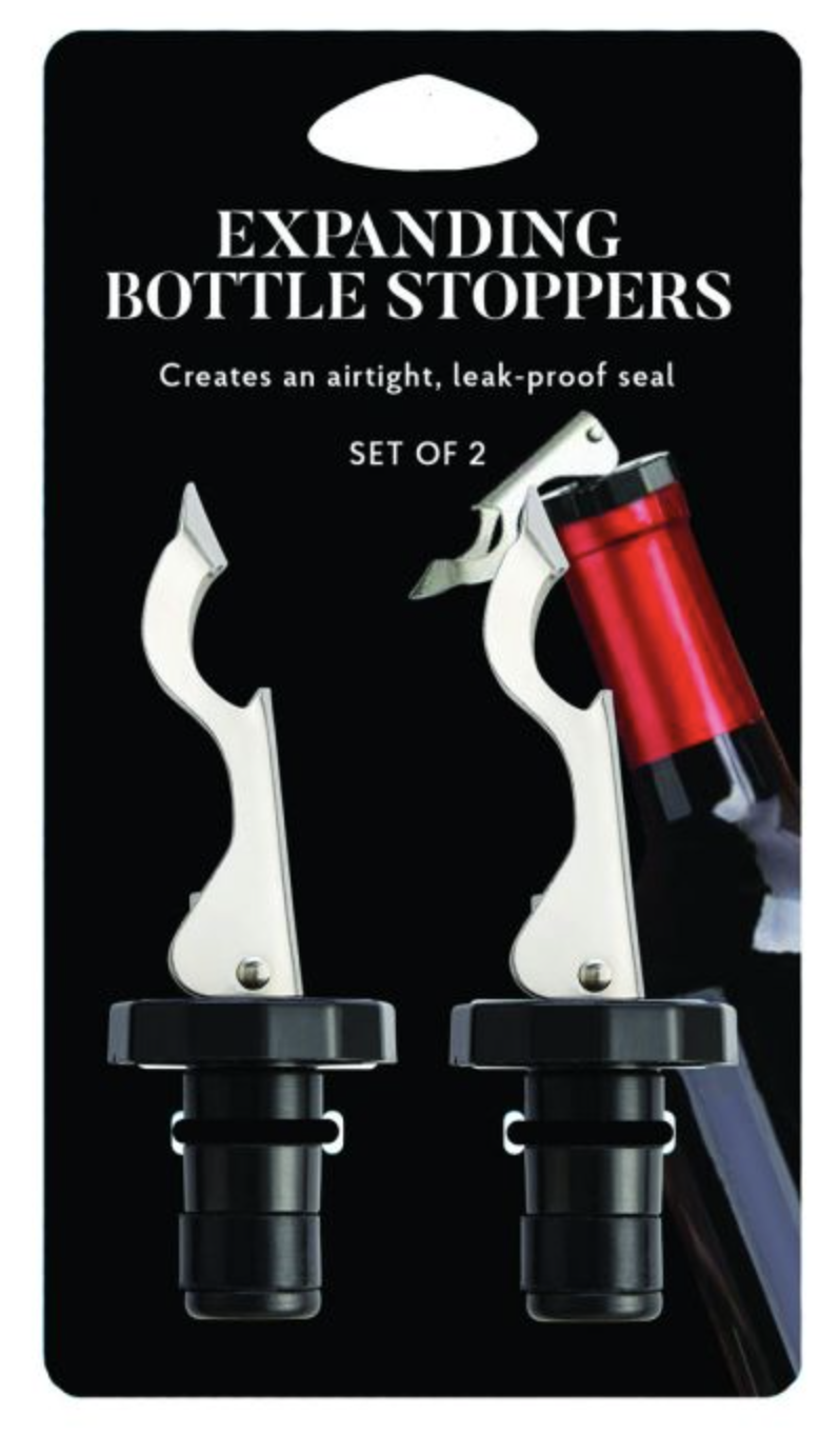For wine lovers, HIC Bar’s set of 2 Expanding Bottle Stoppers (#43971) effectively reseal bottles to create and airtight, leak-proof seal. The handy lever design expands the stopper inside the bottle for a tight leak-proof fit so wine can even be stored horizontally, making it a must for any home bar.