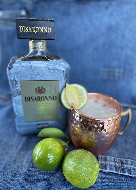 Pour Disaronno and Lime juice over ice in a mule cup and top with ginger beer. Garnish with freshly grated ginger and a lime slice