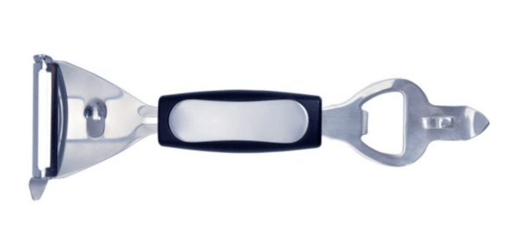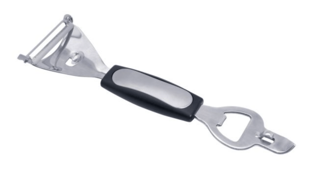 Why search for the right bar tool when you have the 4-in-1 Bar Tool (#93255) on hand. Serving as a bottle opener, can punch, fruit and veggie peeler and channel knife for decorative garish, this versatile tool is crafted from Japanese stainless steel with BPA-free plastic.