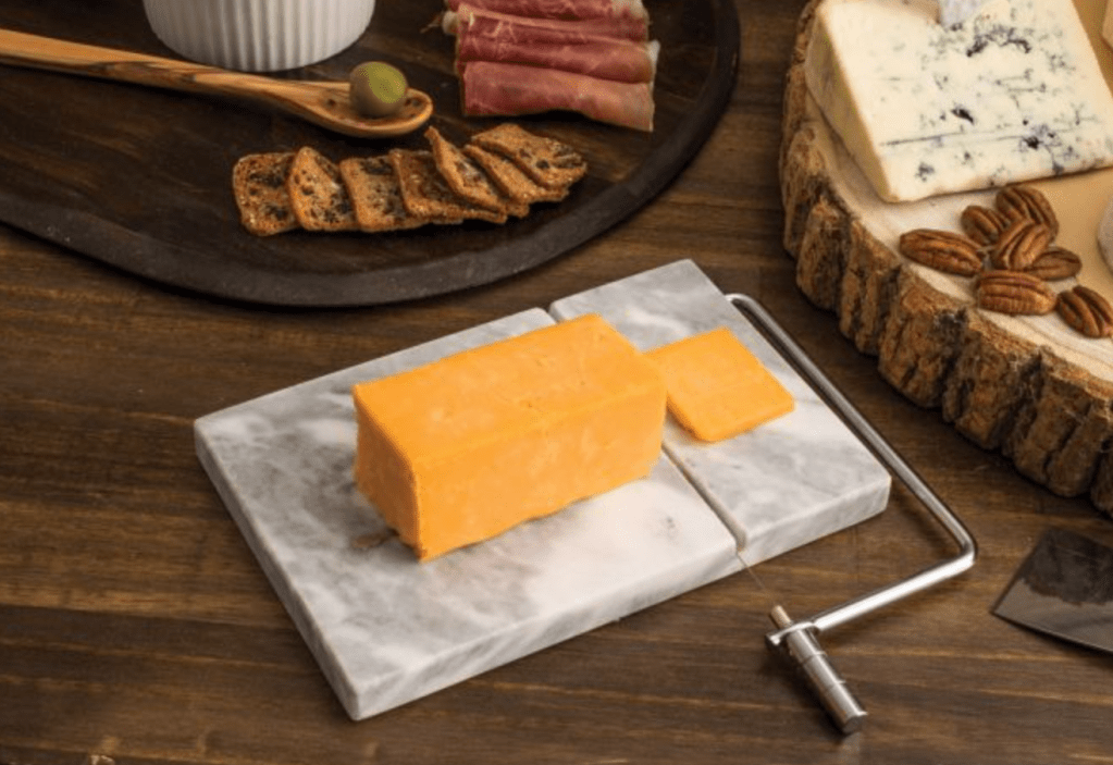 Rounding out the cheese service items is the Marble Cheese Slicer (#22042) – perfect for slicing all kinds of cheese, especially hard cheeses. Great for everyday use or entertaining with cheese and charcuterie boards, simply set cheese on the slicer base with the wire up and lower the wire to slice. Create slices, cheese sticks or cubes.