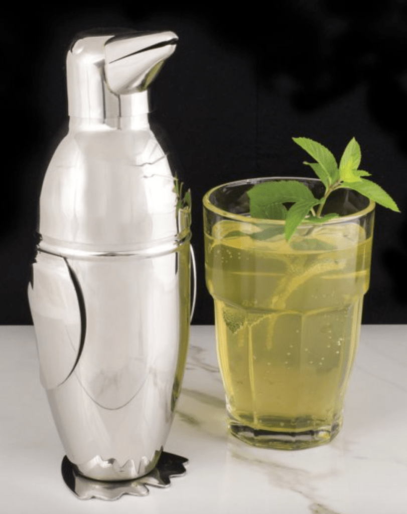 Whimsical and functional, the Penguin Cocktail Shaker (#48024) adds more style to the presentation. Made of 18/8 stainless steel, the shaker, shaped like a penguin, holds 18 ounces.