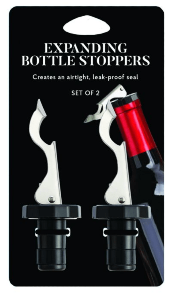 For wine lovers, HIC Bar’s set of 2 Expanding Bottle Stoppers (#43971) effectively reseal bottles to create and airtight, leak-proof seal. The handy lever design expands the stopper inside the bottle for a tight leak-proof fit so wine can even be stored horizontally, making it a must for any home bar.